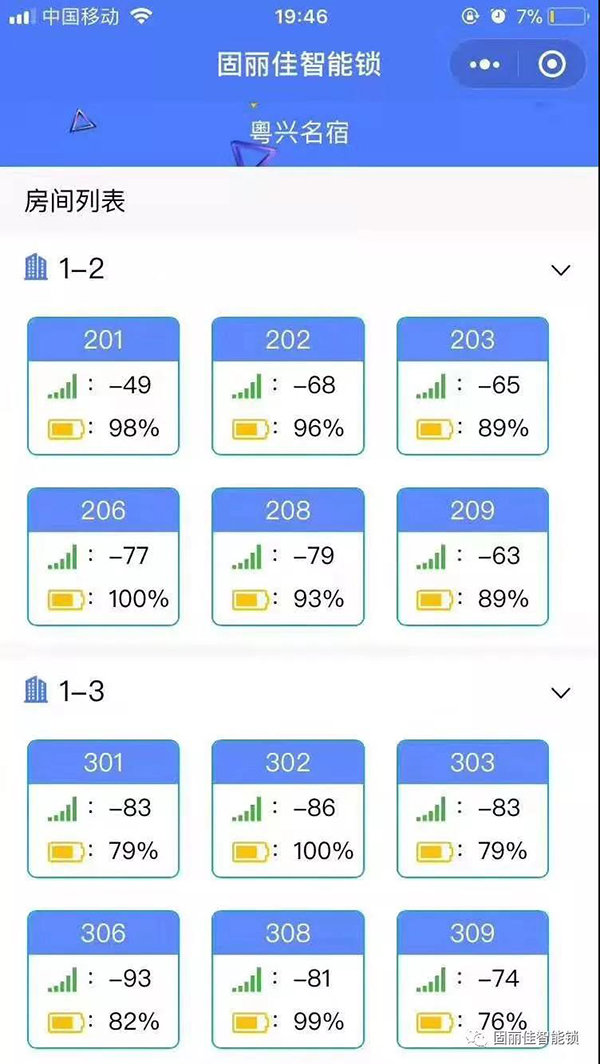 廣州上下九十八甫路粵心民宿精品酒店公寓此次選擇安裝了固麗佳GLJ-9899LoRa無(wú)線聯(lián)網(wǎng)密碼鎖。此款智能鎖外觀高端大氣,是固麗佳研發(fā)生產(chǎn)的專利產(chǎn)品。固麗佳LORA無(wú)線聯(lián)網(wǎng)鎖可實(shí)現(xiàn)密碼開(kāi)鎖信息實(shí)時(shí)聯(lián)網(wǎng)監(jiān)控、手機(jī)開(kāi)鎖,密碼開(kāi)鎖,二維碼開(kāi)鎖,不需布線就可以實(shí)現(xiàn)遠(yuǎn)程開(kāi)鎖、遠(yuǎn)程鎖定鎖、遠(yuǎn)程送電斷電,防飛房,防欠租,還可電腦端手機(jī)端同步在線!功能強(qiáng)大,是精品特色酒店,高端公寓首選之良器!