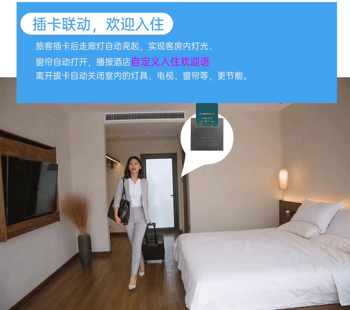 4、自定義場景系統(tǒng)功能:明亮模式、睡眠模式、浪漫模式、閱讀模式、晨起模式、夜起模式等,根據(jù)不同地域、不同的生活習(xí)慣、不同的酒店管理模式自定義配置。
